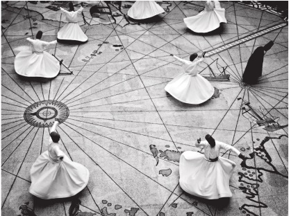 Обратите внимание на рисунок пола на фотографии, на котором исполняют свой магический танец Дервиши. Это карта Земли с полюсом в центре.