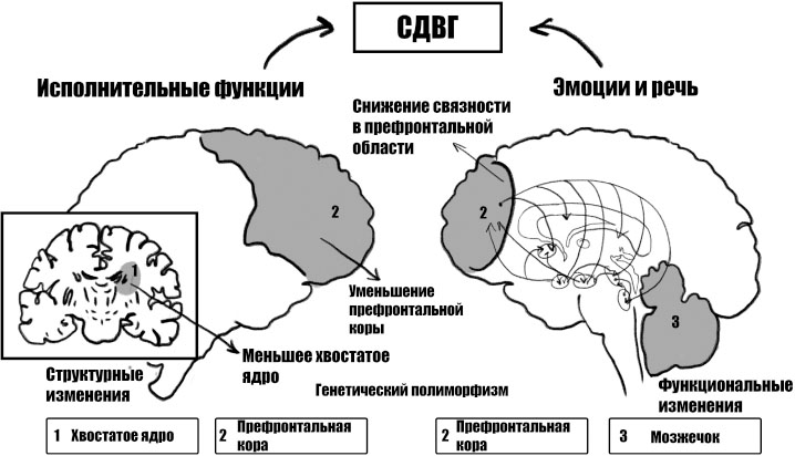 Различные модели предполагают, как эти изменения могут привести к симптомам СДВГ, например: