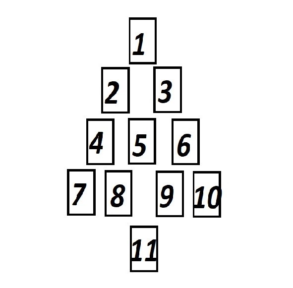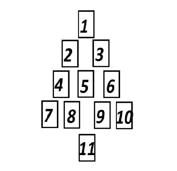 Здесь будут представлены вопросы, которые вы сможете задавать себе в раскладе. Выкладывать карты можно так, как вашей душе угодно, хоть слева на право, хоть справа налево. Хоть сверху вниз, хоть снизу вверх. Главное чтобы вы сами понимали, на какой вопрос сейчас должна ответить конкретная карта в раскладе.