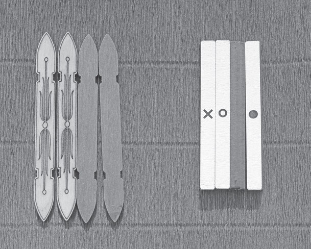 В старинных играх для определения ходов, равно как и для определения будущего, в чем мы уже разобрались, необходимо было отыскать числовое соотношение посредством бросания или вытягивания жребия. В сенете и ньоуте числовые значения присваиваются комбинациям, выпавшим при броске палочек (игральных костей). Такие палочки, как правило, выпуклой стороной окрашены в черный цвет, а плоской – в белый цвет. В результате броска палочки могут оказаться как белой, так и черной стороной вверх, что отражается на подсчете очков: четыре палочки черной стороной вверх = 5; четыре палочки белой стороной вверх = 4; три палочки белой стороной вверх = 3; две палочки белой стороной вверх = 2; одна палочка белой стороной вверх = 1. В Корее еще век назад эти палочки в количестве трех штук использовались для гадания в канун Нового года или в первый день Нового года. В это время на рынках Сеула продавалась небольшая книга, на страницах которой были напечатаны все возможные 64 комбинации очков («гексаграммы гуа») с корейским текстом, объясняющим их предсказательные значения[5]. Для нахождения случайной комбинации палочки бросали трижды[6], запоминая каждый раз количество выпавших очков. В Корее эта практика была довольно популярной.