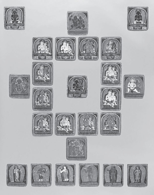 Кроме того, стоит упомянуть о «цакли», гималайских инициатических карточках. Это миниатюрные изображения божеств, учителей, подношений, ритуальных предметов и других объектов учений тибетского буддизма. Они служат мнемоническим инструментом, заменой ритуальных атрибутов, а также объектами для медитаций. Цакли используют в похоронных обрядах, при передаче учений и посвящениях. Инициатические карточки соединяют ученика с отдельным божеством из обширного пантеона. Связанный с этим ритуал включает визуализацию божества, описанного в читаемых мантрах (заклинаниях), и божества, представленного на карточке. Однако перед этим ученик получает разрешение у избранного божества либо во сне, либо под руководством учителя. Другое использование цакли – выкладка на земле в форме мандалы; так создавалось фиксированное священное пространство.