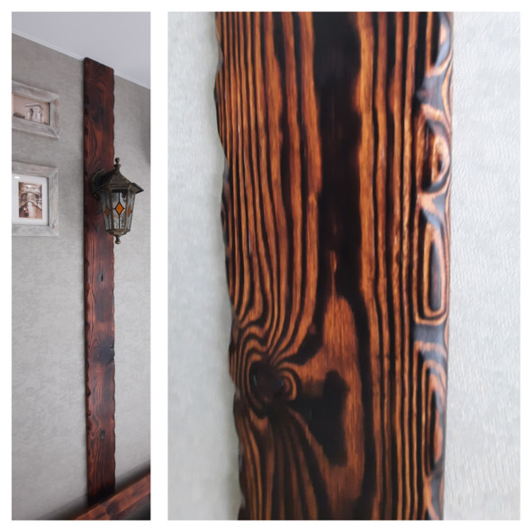 Фото: Древесина после обжига и браширования металлической щеткой.