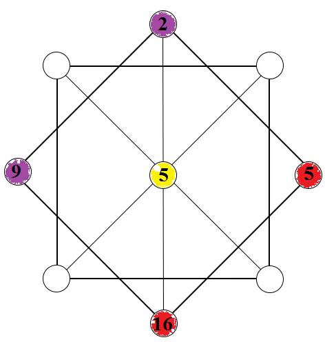 В середине нашей матрицы, ставим число – 5 (наше пятое число в расчетах)