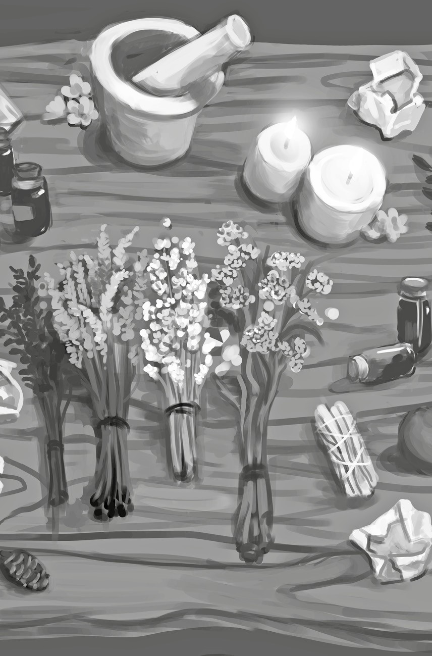 Её окружали шкафы, стол, кровать. Мягкий ковёр и бежевые стены. Коробочки отца, разбросанные по полу, и одеяло, и полотенца, и травы для настоек.
