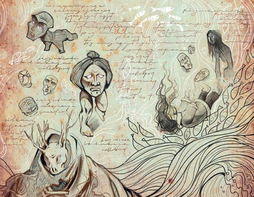 Она слышала много историй. От отца, от соседей, которых ей удавалось подслушивать, от приезжих за помощью семей и путешественников. Ангакоки, умеющие превращаться в птиц, спускаться за знаниями и помощью к мертвым. Создающие по ночам сильнейших злобных духов, которые отправлялись к таким же ангакокам и разрывали их на куски. Ученики, голодающие неделями и месяцами, чтобы обрести силу. Часами стоящие коленями на земле, просящие духов послать им диких зверей в тяжелые дни.