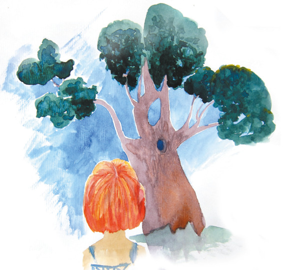 Девочка присела и стала пристально смотреть под дуб, так как именно оттуда, как показалось, и исходил звук.
