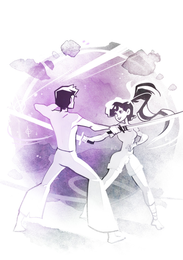 Никто из нас второго не умней,Движения оттачивались в танце.То ты ведёшь, то оставляешь мнеВести, сменив привычное пространство.Ни бездна, ни бесчисленность огней,Не помешают плавно развернуться!Тот самый меч, который дал ты мне —Кружась, не должен смертью нас коснуться!Я – нежность, я – цветок и я – война,Огонь и смех, и песня, и затишье.Бела ль, черна над нами вдруг луна —Мы брали суть, считая форму лишней.Мой философский камень – он в руке,Второй – в твоей груди алмазным светом.Неважно, близко или вдалеке —Важней сама охота за ответом!