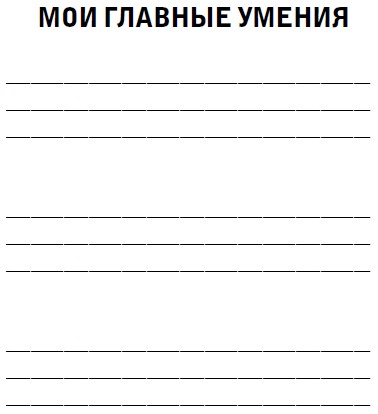 Ну, например, кто-то из вас может с полным правом сказать: я умею готовить пирожные, я шикарно шью игрушки и замечательно делаю презентации. Может быть, вы классно плаваете, идеально ладите с детьми и безупречно подбираете себе и мужу гардероб. Навыки должны быть предельно конкретные: не просто «хорошо готовлю», а «хорошо готовлю, к примеру, рыбу».