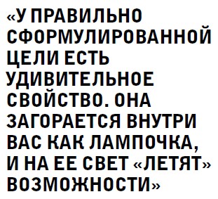 У правильно сформулированной цели есть удивительное свойство. Она загорается внутри вас как лампочка, и на ее свет «летят» возможности.