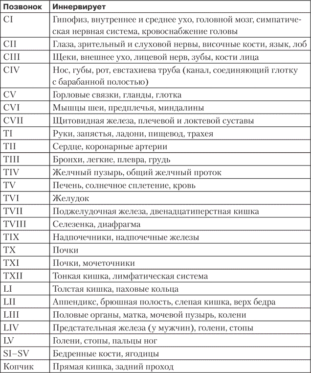 Таблица 1.1. Иннервация позвоночника
