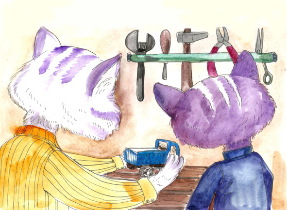 – Игрушки часто ломаются, но мы можем их починить. Не торопись расстраиваться! Посмотри, колесо крепится к машинке с помощью маленькой палочки. Я уверена, папа сможет подобрать такую в своем ящике с инструментами. И ты поиграешь с ним в автомастерскую, и приделаешь колесо к машинке. Она будет как новая!