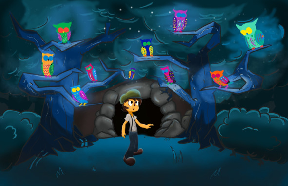 На окружающих Васю деревьях сидели разноцветные птицы. Вася пригляделся: это были совы. Только очень уж необычные. Их перья были окрашены всеми цветами радуги. Вокруг не было двух одинаковых сов.
