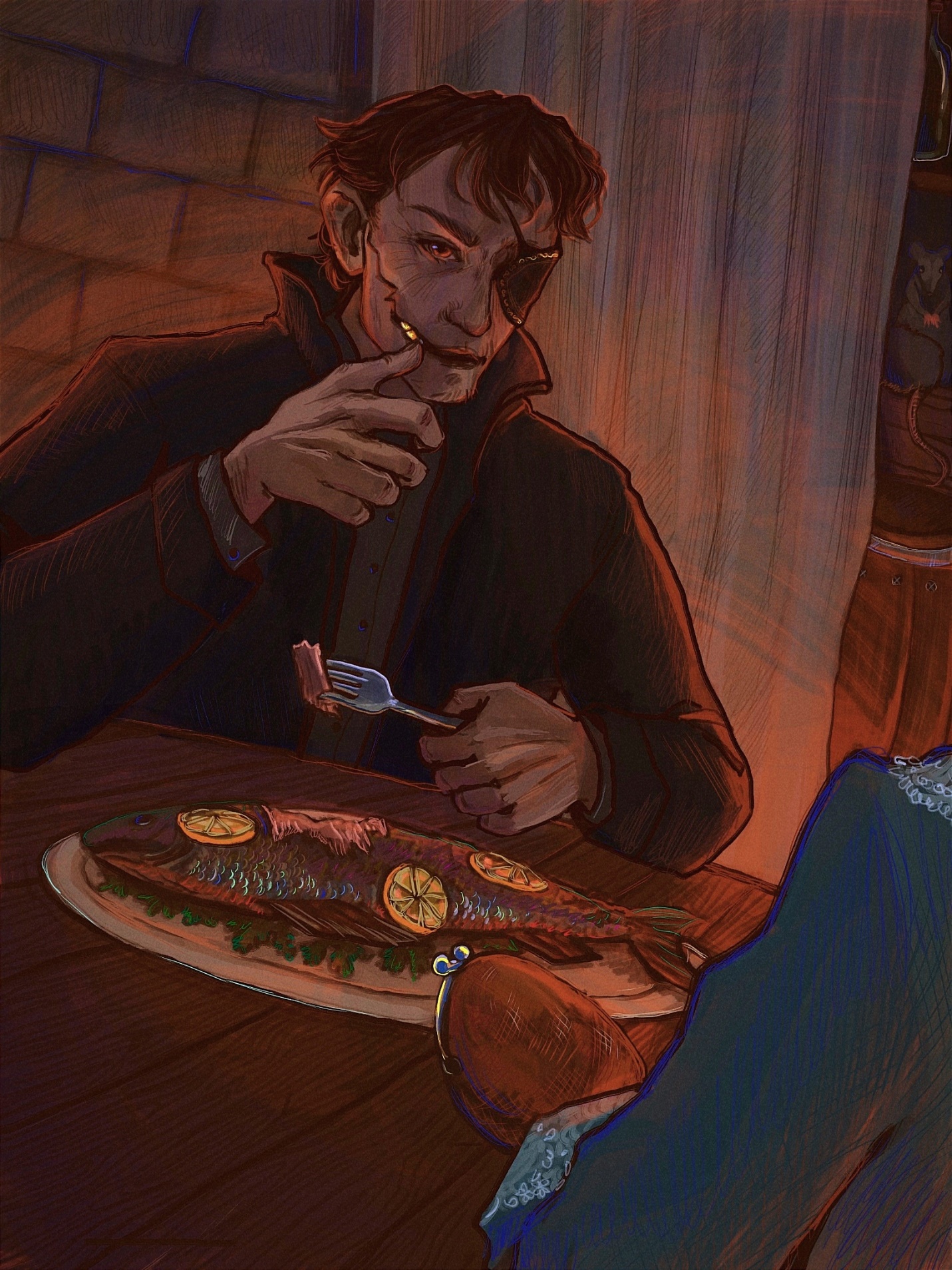 Урфус ждал хотя бы легкого удивления на лице Мясника, но тот лишь продолжал есть, периодически привычным движением вытирая правый угол рта, где скапливалась слюна, а пару раз даже выпадали кусочки рыбы. Дальше торговец говорил быстро и тихо, хотя кроме наемника услышать его могли только крысы: