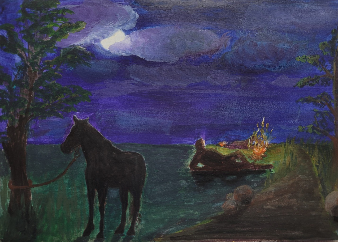 Было около полуночи, ну, возможно, шестой темный час, если судить по затухающему огню и взявшему перерыв соловью. Луна как бы нехотя показывалась из-за туч и сразу же скрывалась. Ни одной звездочки видно не было. Земля стремительно расставалась с накопленным за день теплом, а ветер, который вечером дарил приятную прохладу, сейчас заставлял ежиться и вспоминать, что это всего лишь первая ночь лета.