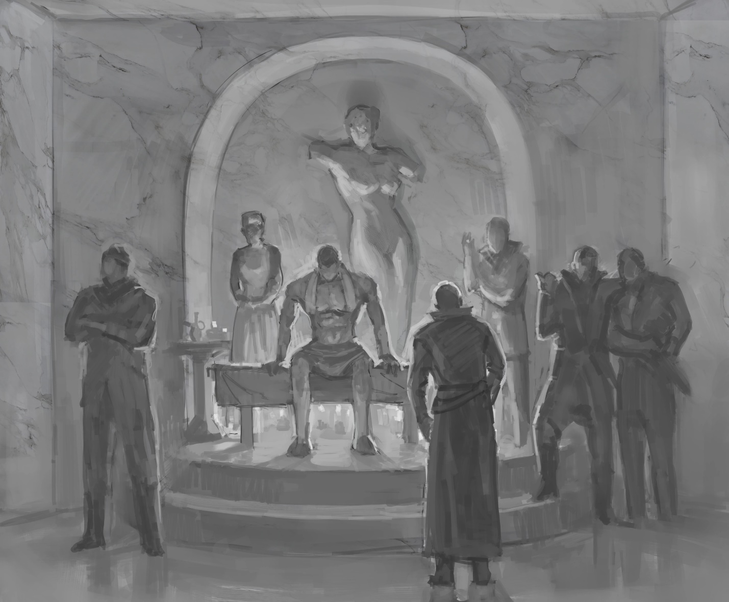 Долго сидели Боги в молчании, пораженные новостью страшной, пока Джулиус неожиданно не рассмеялся. Заявил он, что странную забаву Брутана видит в случившемся и что считает бесчестным со стороны своего дяди подбивать на ложь скромную супругу. Шепот раздался среди Великих, а Брутан впал в ярость, разозлившись на клевету, <…> едва удержали его от расправы над племянником братья. <…> Разошлись опосля этого Боги, предпочитая верить, что лишь непонятную шутку придумал самый неистовый из них. А Куперус не остановил никого, ибо не знал, что говорить и что делать».