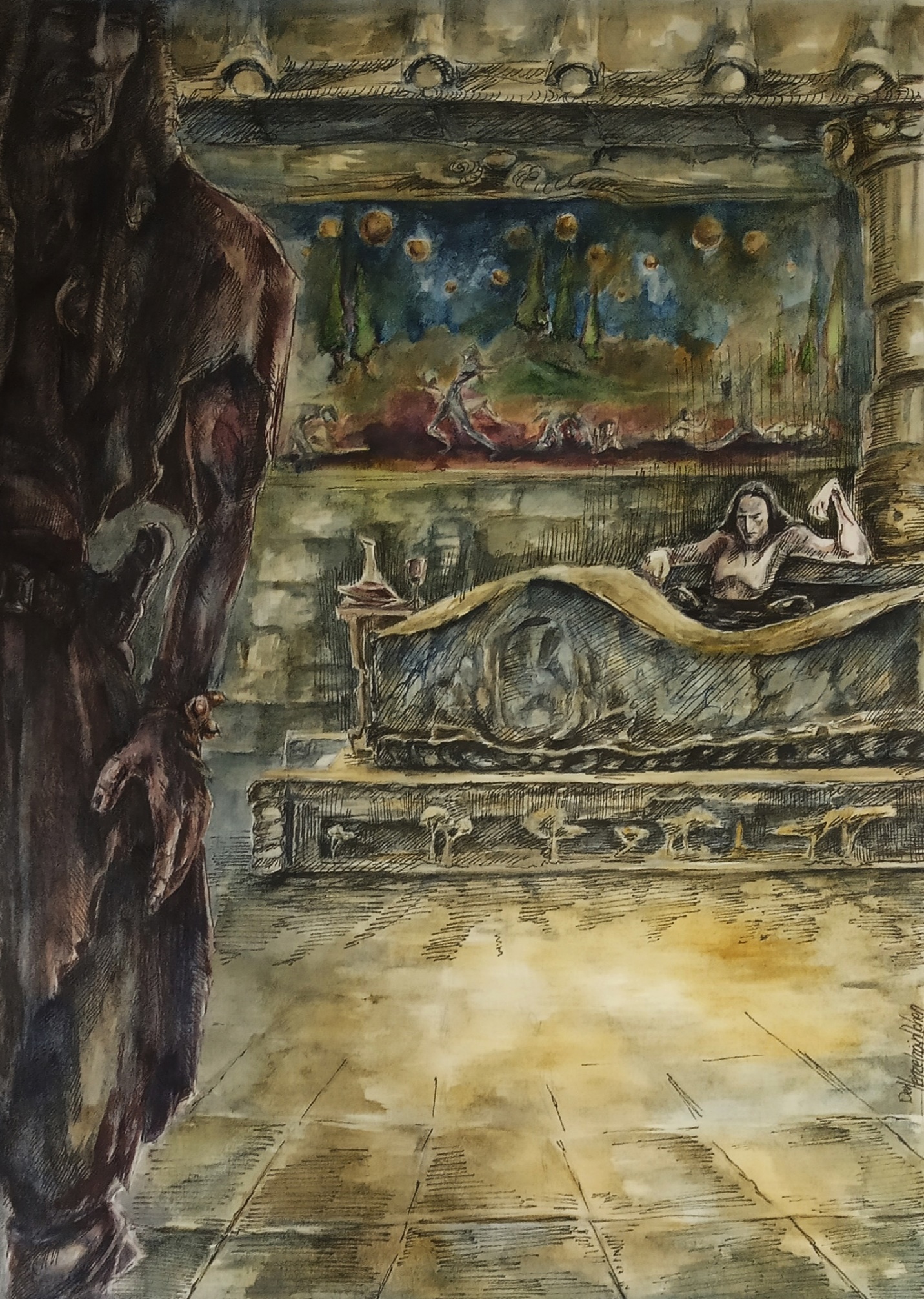 – Внешне полубоги, как и их родитель, прекрасны. Ты, случайно, не знаешь, кто первым додумался изобразить всю злобную суть детей Брутана через эти ломанные изгибы и скалящиеся лица? – зачем-то спросил он у девки, пришедшей с сильно пахнущей чашей в руках.