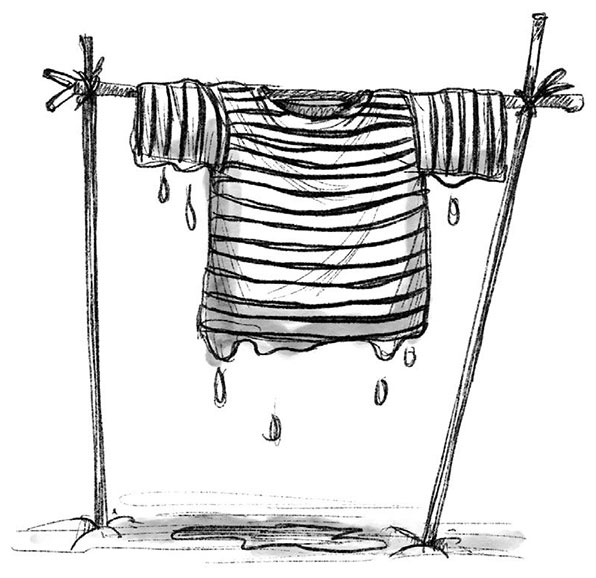 Поли хотела спросить, что такое опера, но не успела. Мыш вдруг скрылся в тумане. Скоро он вернулся с охапкой хвороста и развёл костёр. Затем снял с себя совершенно мокрую тельняшку, выжал её и повесил сушиться над огнём.