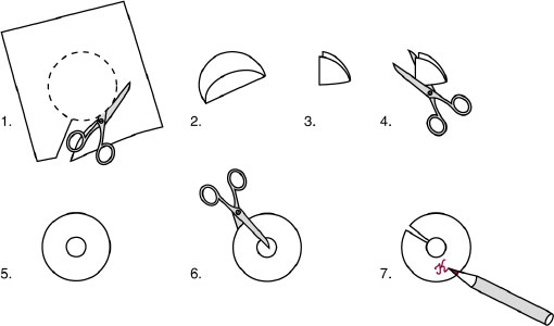 Сделать же самостоятельно такой отличительный знак – две минуты (рис. 8б). Вырежьте из простой бумаги кружок диаметром со среднестатистическое основание бокала, сделайте отверстие в его центре и один разрез сбоку. Напишите ярким фломастером свое имя и, когда получите на дегустации бокал, наденьте маркер через прорезь на ножку поверх его основания – готово. С тех пор, как я начала практиковать маркирование бокалов, покуситься на мой бокал еще не решился никто.