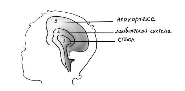 Ствол мозга в принципе является набором неизменяемых программ, и вмешиваться в его работу было бы опрометчиво. Что же остаётся? А только лимбический мозг, который уже функционирует и готов помочь справиться с поставленной целью.