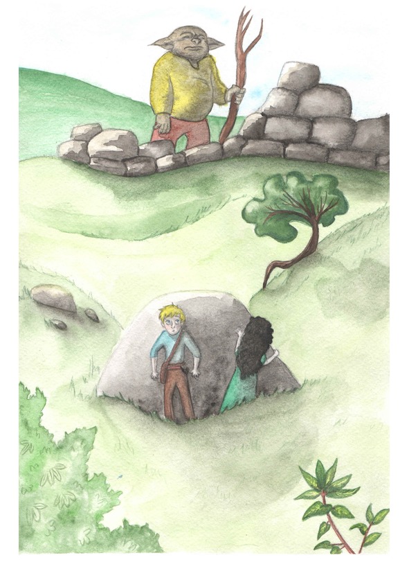 Проходя по лесу, Триста немного отстала и услышала чей-то хриплый голосок. Нахмурив брови, она огляделась по сторонам и поняла, что голос исходит из ствола дуба. Подойдя ближе, она увидела, что на ветке сидит маленький ушастый человечек с темно-зеленой кожей, ростом с полметра.