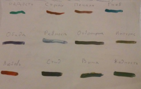 После рисунок откладывается до 10-го этапа игры. Перед проведением 10-го этапа участников просят выбрать цвет для предложенных в списке эмоций.