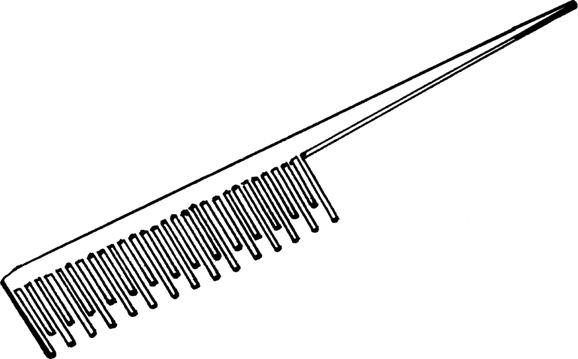 5. Расческа с одним «хвостиком». Это одно из главных «орудий труда» при создании причесок из косичек. Такой расческой можно легко и быстро сделать пробор любой формы. Нужные линии «прочерчиваются» тонким «хвостиком» такой расчески как карандашом, после чего волосы разводятся по разные стороны от получившегося пробора (рис. 5).