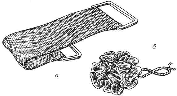 Рис. 4. Нейлоновые мочалки: а) прямоугольная мочалка; б) мочалка-шарик