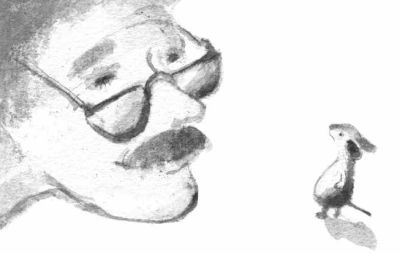 Этот «кто-то» походил на мышь, но только очень большую. Он был серый, с длинным хвостом и седыми бакенбардами вдоль морды. Сидел он, весь обернувшись большим кленовым листом. Другой лист он держал в лапах. Там не шевелился, испуганно вглядываясь в незнакомца. А тот, повернул морду, задумчиво поглядел на мышонка и заговорил: