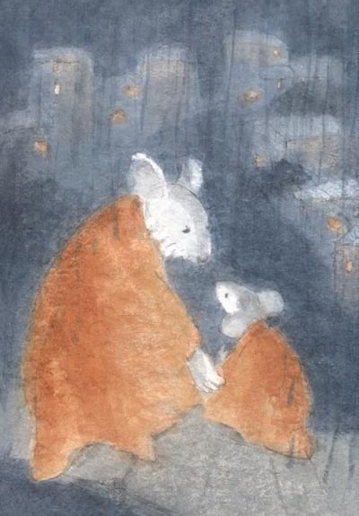 Дождь поливает…И если далёко твой дом,От непогоды укройсяКленовым листом,Маленький странник.Проговорив всё это, незнакомец сам осторожно накрыл спину мышонка мягким листом клёна. Потом отвернулся и снова стал смотреть вдаль.