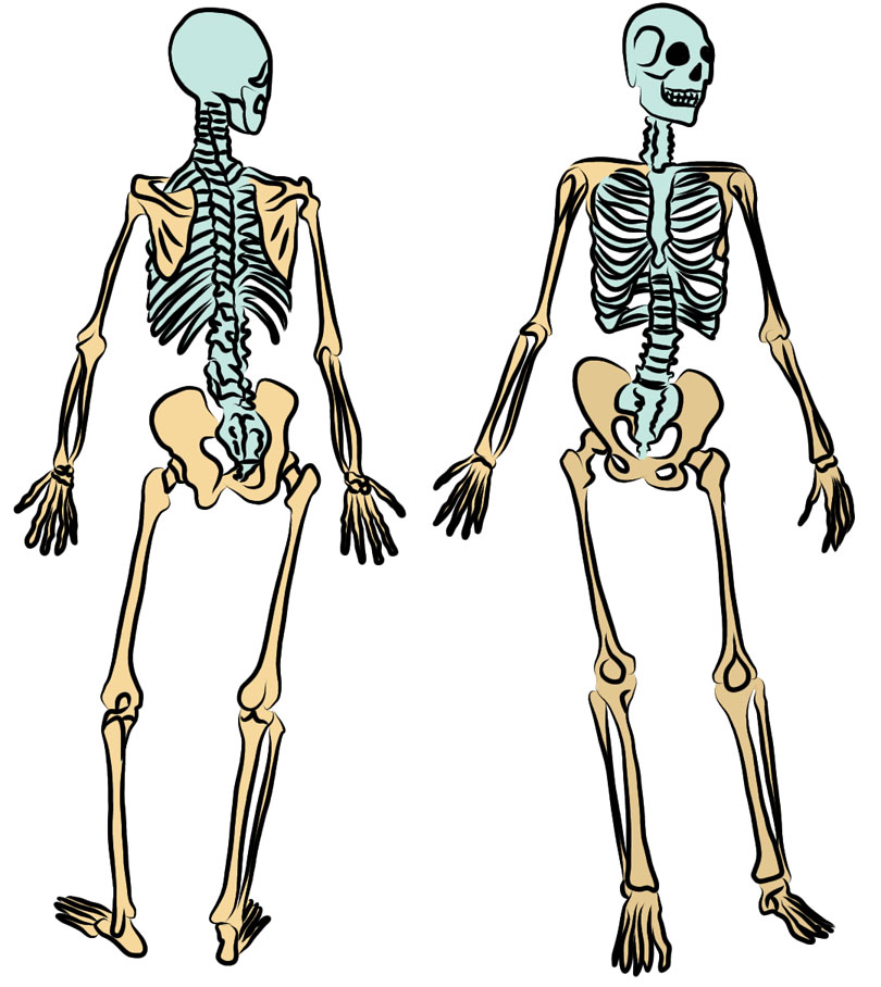 Отличить их друг от друга легко: осевой идет по центру и включает в себя череп, позвоночник, грудину и ребра. А добавочный – все, что находится от центральной части к периферии: тазовый и плечевой пояса конечностей, верхние и нижние конечности.