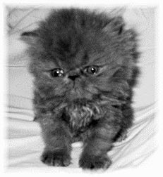 Дымчато-черная персидская кошка (6). Шерсть контрастная: остевые волосы на треть длины черные, снизу более светлые, подшерсток пепельно-белый; на лапах и голове окраска более интенсивная. Дымчатость становится заметной лишь при движении животного, в спокойном состоянии оно кажется черным. На лбу может иметься рисунок в виде буквы «М». Нос и подушечки лап черные или коричнево-черные, глаза медные или темно-оранжевые. Основные недостатки – наличие пятен, рисунка или других цветов, а также противоположный названному контраст в окраске. Подобные дефекты нередко наблюдаются у котят, однако с возрастом они исчезают.