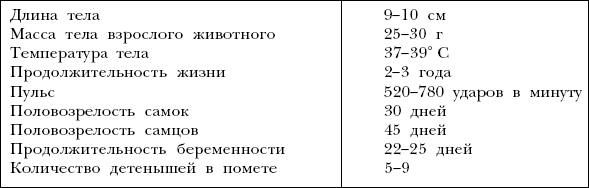Основные физиологические данные мыши