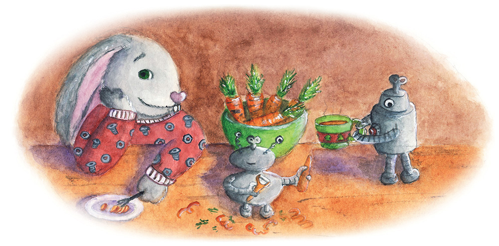 Зайчики очень любят изобретать конструкторы и мастерить музыкальные инструменты.