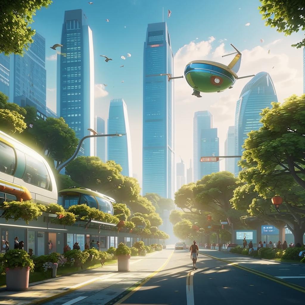 Анна шла по широкой аллее, вымощенной блестящей керамической плиткой, мимо высоких стеклянных башен, сверкающих в солнечных лучах. Над её головой, на уровне десятого этажа, пролетали персональные аэрокары, оставляя за собой еле уловимый шлейф ионов. Где-то вдали раздавался мягкий гул городских магнитных поездов, курсирующих по подвесным рельсам.