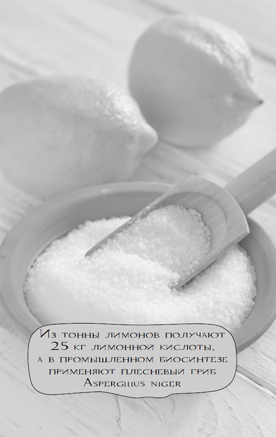 Щавелевая (C2H2O4), малоновая (C3H4O4) и лимонная (C6H8O7) кислоты – белые кислые кристаллики. Щавелевая и малоновая кислоты есть в плодах и листьях щавеля, спаржи, крапивы, рябины, черники. Много лимонной кислоты содержится в ягодах барбариса, земляники, малины, в овощах и фруктах, особенно в цитрусовых.