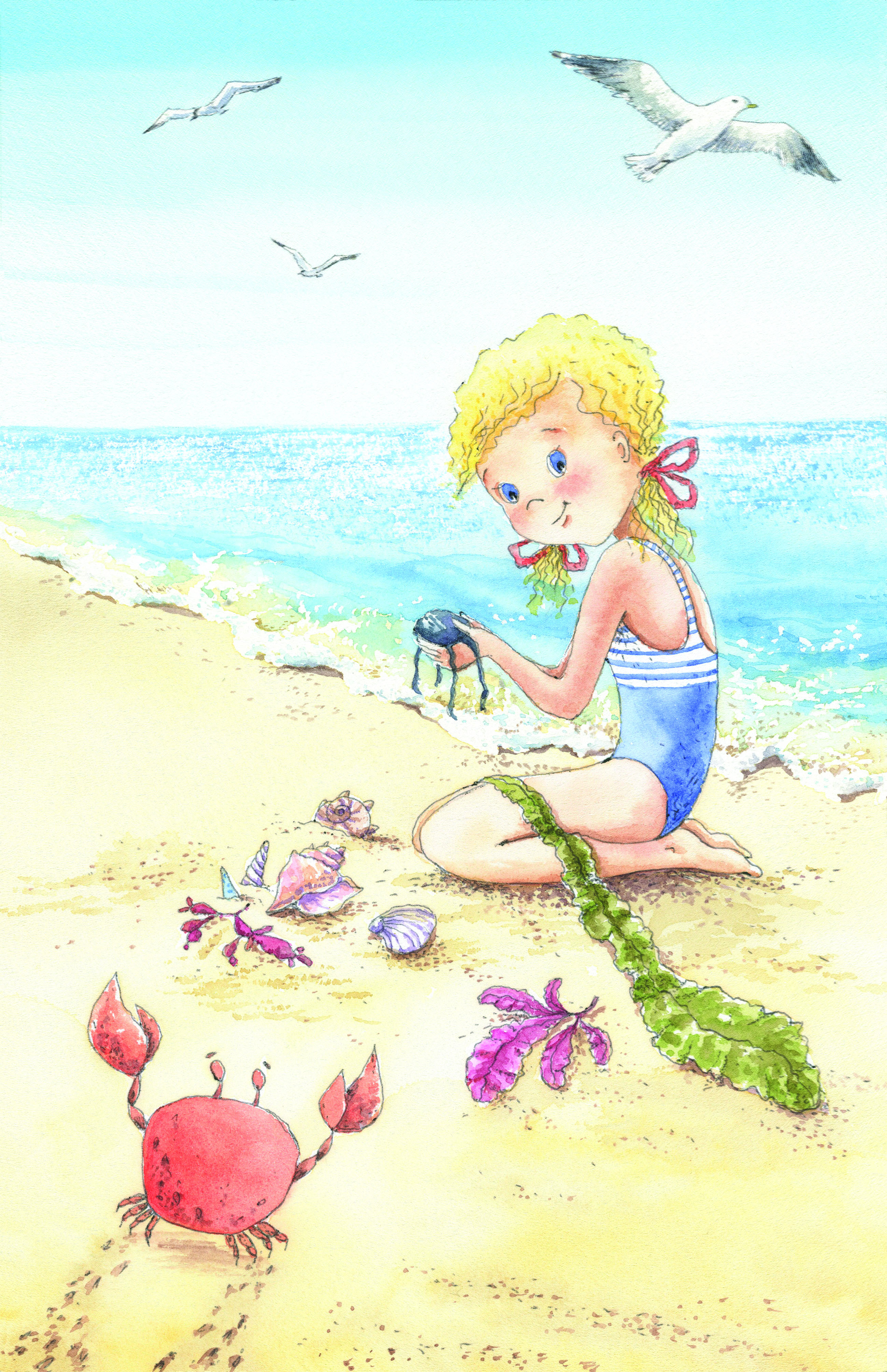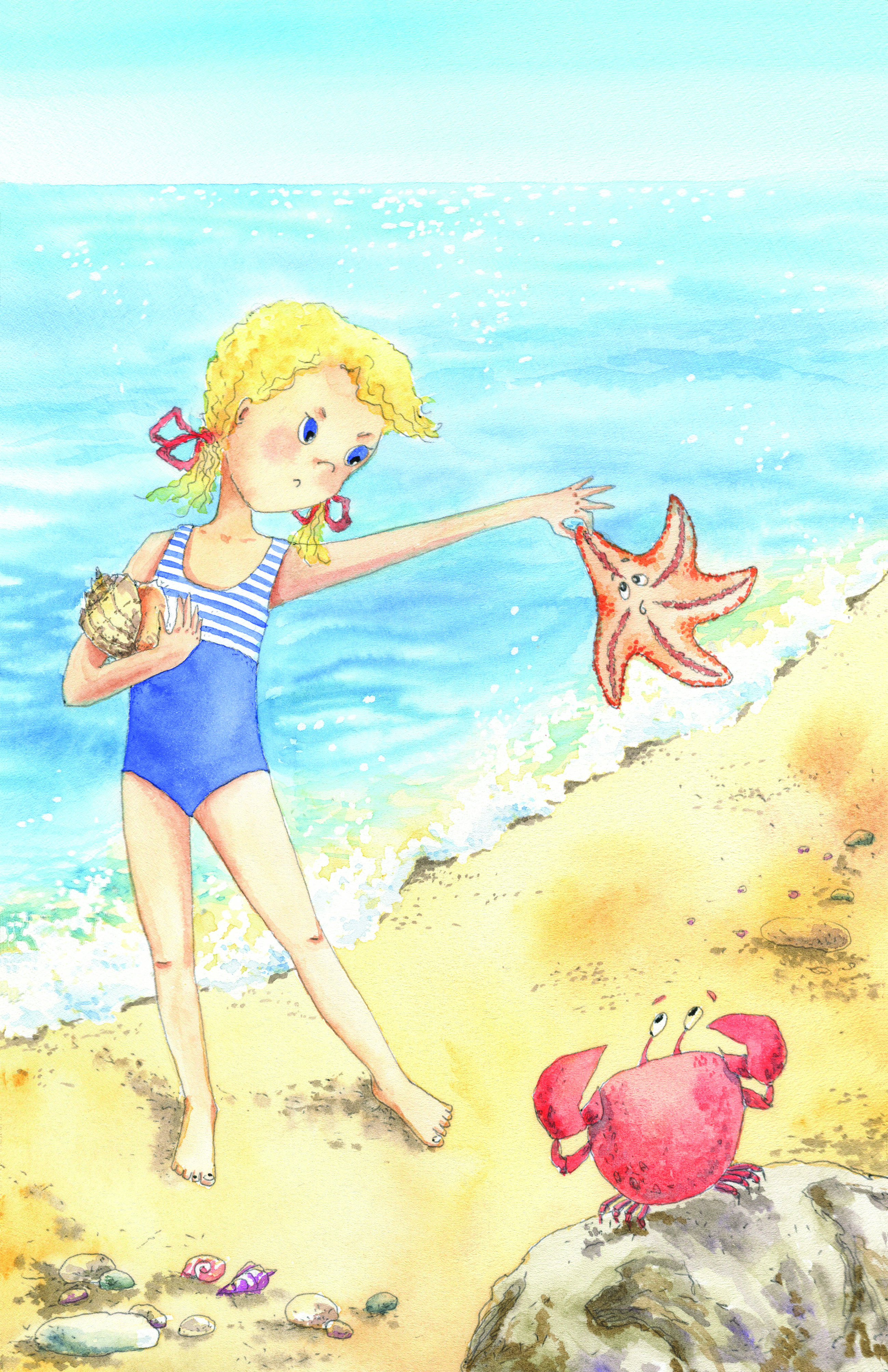 Девочка со всех ног побежала к Морской Звезде. Она сняла Звезду с раковины, которой та хотела полакомиться, посадила её на песок, а сама взяла в руки моллюска и побежала с ним в глубь моря.