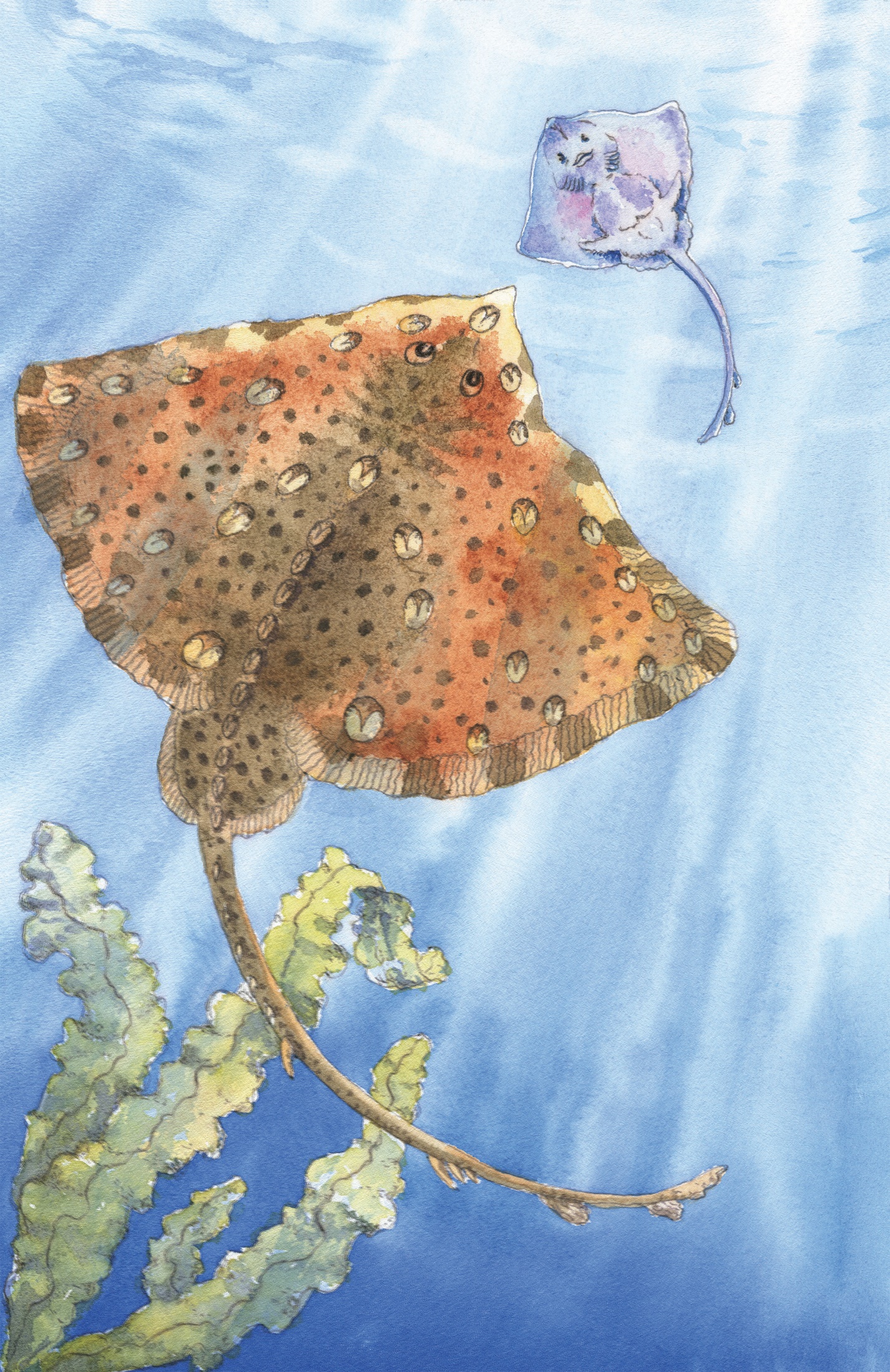 Скат аккуратно взял его плавниками-крыльями и стал внимательно рассматривать.