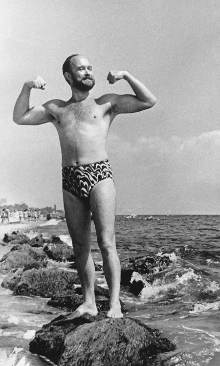 И бутылочку коньячка, что привёз им в подарок, для тонуса оприходовал (бабушка-то и дедушка в рот спиртного не брали, но им, по мнению папули, конечно, приятно было хоть посмотреть, как это другие гарные парни делают), и анекдоты всякие про советскую власть говорил (дедушка-то был убежденный коммунист, ему, по мнению папы, наверняка интересно было послушать правду о родной партии), а под конец визита, на пляже, в трусах, стал вокруг моей несчастной бабушки на руках ходить (дедушка же бабушкин на целый год его старше, ей же хотелось, по мнению папы, молодым мужиком полюбоваться).
