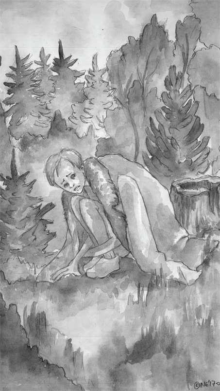 Заплакала баба: коза у них в семье единственной скотиной была, да делать нечего, послушалась колдуна. Отвела животину в лес да вперёд пошла. Что там началось после, прабабка Михайле рассказывала лишь пару раз на его памяти, когда он ещё шестилеткой был. Говорила она, будто сзади постоянно шажки детские слышались да ауканье. Кто бы знал, чего ей стоило не оглянуться тогда, когда сквозь это ауканье она слышала «мама!» и уверена была, что то сынок её зовёт потерявшийся. Через полчаса блужданий по лесу голос сзади стал совсем близким, казалось, даже воздух у неё по ногам гуляет, когда сзади пробегал некто в кусты, откуда потом жалобным голосом начинал плакать: «Мама, мамочка! Мне холодно! Забери-и-и меня!» Страшно было женщине, понимала она, что живой ребёнок уже давно бы оббежал её и на глаза показался, а этот всё сзади, почти вплотную рыщет, а всё только оглянуться её просит. Припустила она вперёд бегом, что было духу, а преследователь и не думал отставать. В какой-то момент несчастная женщина споткнулась о древесный корень, торчавший из земли, и растянулась на влажной, прелой прошлогодней листве. Кто-то забегал вокруг неё, засуетился. Слышались сопение и торопливые шаги, будто рядом собака бродит или ещё какая скотина некрупная. Заплакала женщина от страха, боялась голову поднять, только бы преследователя своего, голосом сына звавшего, не увидать. А когда всё же открыла глаза, поняла, что чаща впереди расступилась, и на лесной опушке на корточках, съёжившись, сидит её сынок настоящий. Тут же стихли все шорохи позади неё, беготня прекратилась. Будто и не было ничего…