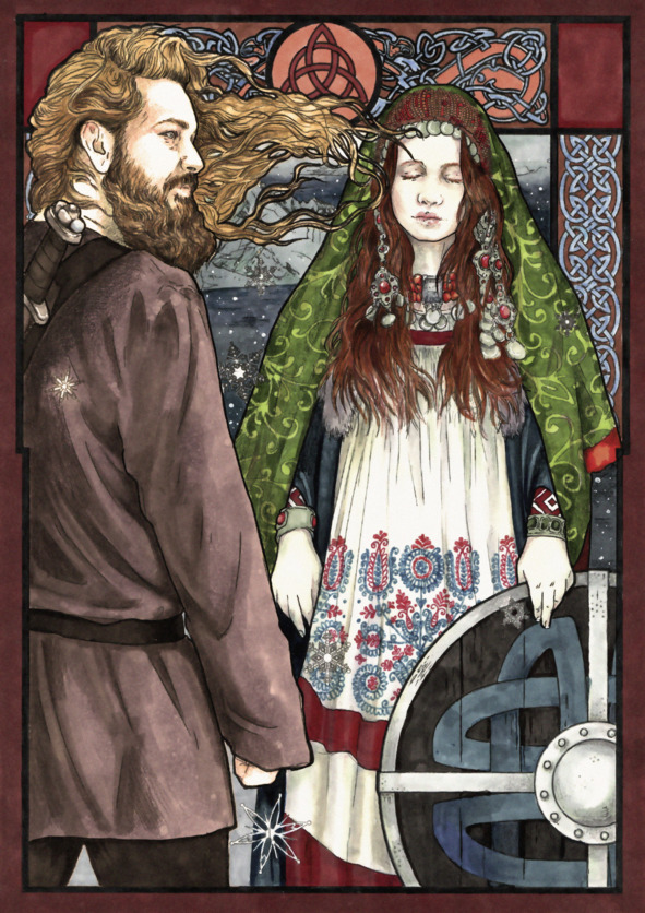 Закат облил земную твердьВином истаявшего дня.Ты сплёл из буйных ветров плетьИ ею привязал коня.Натянут крепкой тетивойТвой путь по краю бытия.Ты не позвал меня с собой,Но оглянулся на меня,И отблеск солнца острый меч,Как струи крови, обагрил.Ни на одной из наших встречТы о любви не говорил…Но сплёл из буйных ветров плетьИ ею привязал коня,Лишь для того, чтобы успетьОбнять пред битвою меня…Закат облил земную твердьСияньем солнечных лучей.Не разлучит нас даже смерть,Ведь ты назвал меня своей!Варяжская