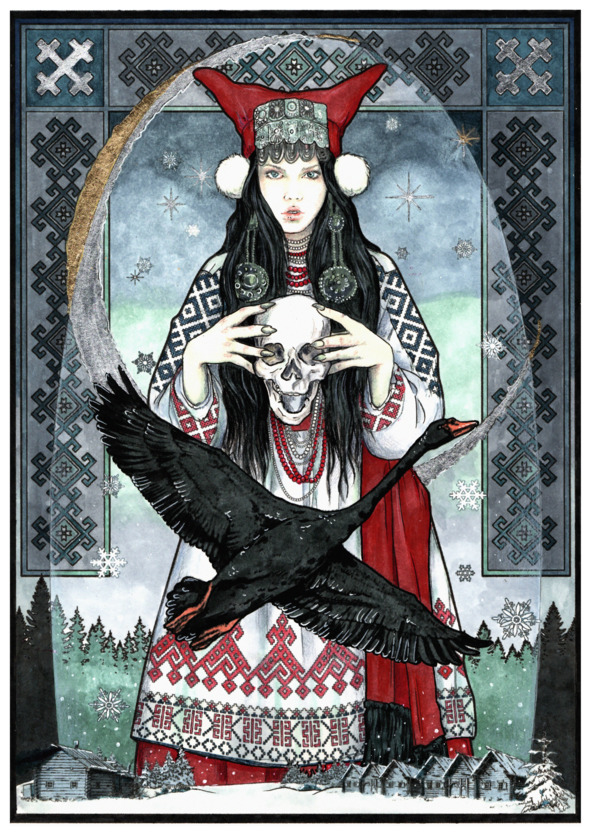 Как из рук веретеноВырывалося,За бревенчатой стенойОсень маялась.Не тебе ль дарила яПояс вышитый?Плачет за окном заря,Да неслышно мне!Ветер струнами звенит,Да не вижу я:Душу мне Зима томит,Государыня…На святые образа —От лампады свет,За тебя молилась яМного горьких лет,А над крышами стеналВетер северный,Много лет тебя он ждалИз чужих земель.Но беспечная лунаВновь заклятья вьёт,Тридевятая зимаТебя в гости ждёт.За какой судьбой бредёшьИ охотишься?Коли ты опять уйдёшь —Не воротишься…Верность