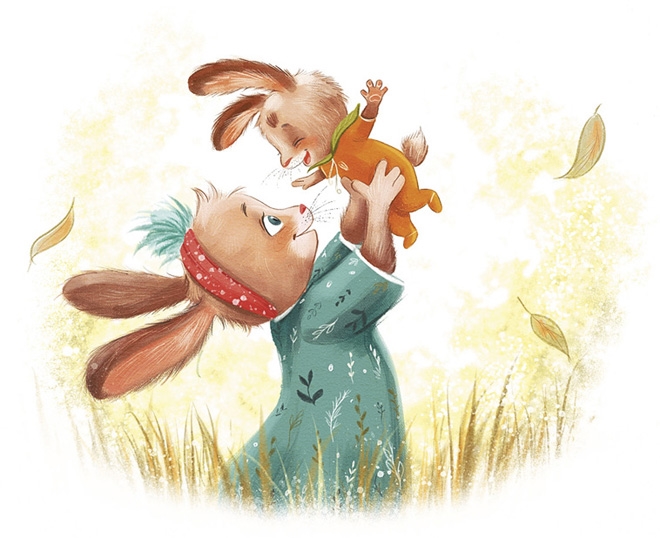 Когда с дерева упал четвёртый жёлтый лист, у мамы-зайчихи родился – подумать только! – настоящий зайчонок!