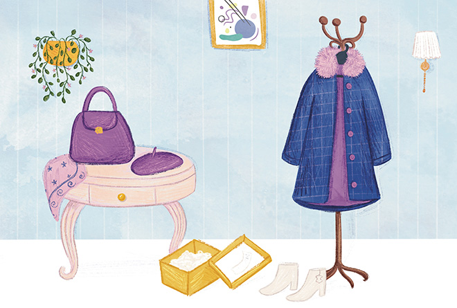 И только лето пуговку огорчало, летом она скучала. Ведь они с пальто оказывались в тёмном шкафу. Лишь иногда пуговка видела свет – когда впархивали или выпархивали платья – разноцветные, одно другого ярче.