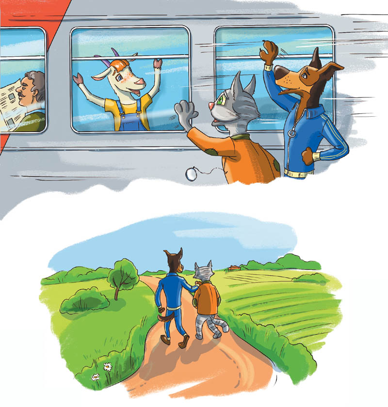 – Прыгай! Скорее! – закричал кот и что было сил подтолкнул козу в вагон.