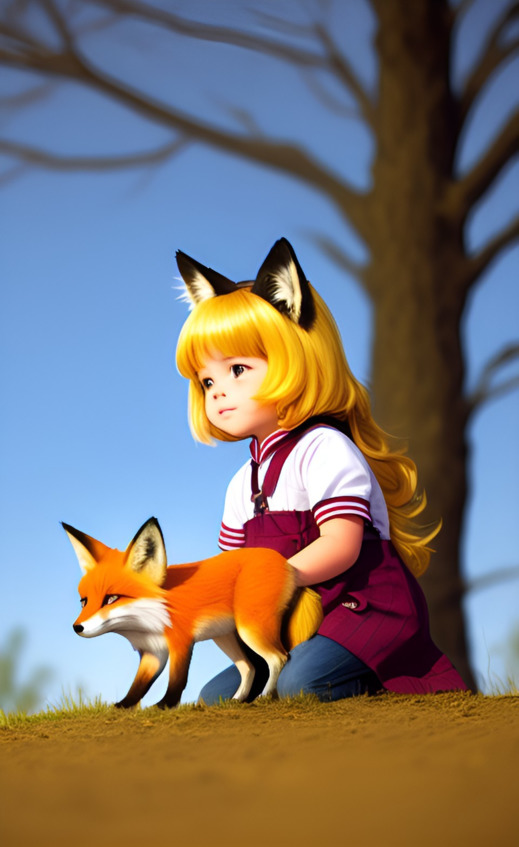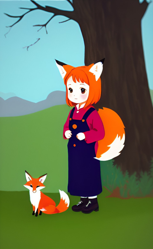 Жили-были маленькая девочка-лисичка и ее друг маленький лисенок. Они жили очень скромно и бедно в лесу, в небольшой норе. Девочка-лисичка заботилась о своем маленьком друге и учила его самым важным вещам в жизни лисички – охоте и скрытности, чтобы выжить в дикой природе.