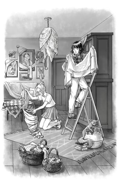 Втроём работа пошла гораздо быстрее. Стоило Иве подумать, что надо бы одеть сервант, – как Ариса уже прятала его ручки в варежки. Стоило взглянуть на люстру – как Ариса уже ставила стремянку. Стоило спросить, не видел ли кто-то синюю манишку, – как Ариса бросала всё и начинала искать. Справлялась она хорошо. Ива даже один раз засмотрелась на то, как ловко та укутывает шалью вазу, но одёрнула себя: «Подумаешь…»