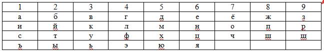 5 – мое имя переведено на числовой язык (смотрите таблицу ниже)