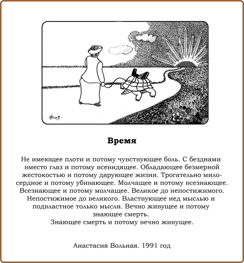 Не имеющее плоти, и потому чувствующее боль. С безднами вместо глаз и потому всевидящее. Обладающее безмерной жестокостью и потому дарующее жизни. Трогательно милосердное и потому убивающее. Молчащее и потому всезнающее. Всезнающее и потому молчащее. Великое до непостижимого. Непостижимое до великого. Властвующее над мыслью и подвластное только мысли. Вечно живущее и потому знающее смерть. Знающее смерть и потому вечно живущее.