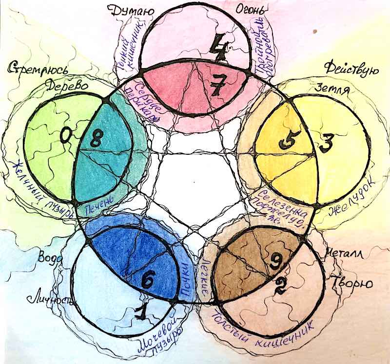 Оставалось найти соответствия между рядами цифр: Инь-органы – 8, 6, 9, 5, 7 и Ян-органы – 0, 1, 2, 3, 4.»