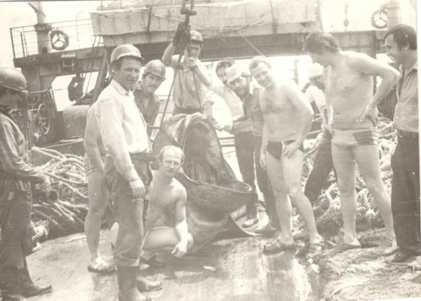 Район обследовали. Определили направление и протяжённость показаний, и в конце концов запустили трал. Поведение ставриды также изменилось. Она начала вести себя нервно, непредсказуемо. Очевидно, её пугали излучающие импульсы поисковых приборов. В этом случае применили другую тактику лова. Определив предварительно основные глубины залегания показаний, и выведя трал в нужный горизонт, выключили поисковый прибор. Таким образом, прошли «вслепую», протащив трал в течение двух часов. Выбранная тактика оказалась успешной и принесла свои плоды. Подняли порядка 80 тонн. Вместе с «полезной» рыбой трал неожиданно принёс диковинную рыбу.